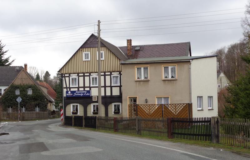 Keywords: Gaststaette Scharfe Ecke in Cunewalde.JPG en Restaurant Scharfe Ecke in Cunewalde Hauptstr 133 in April 2015 de Gaststätte Scharfe Ecke in Cunewalde Hauptstr 133 im April 2015 own Saalebaer 2015-04-03 Restaurants in Cunewalde Cc-zero