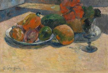 Keywords: Gauguin Nature morte aux mangos et à la fleur d'hibiscus.jpg Artwork Creator Paul Gauguin Nature morte aux mangos et à la fleur d'hibiscus ou Fruits exotiques et fleurs rouges Natura morta amb mangos i flor d'hibisc o Fruites exòtiques i flors roges 1887 oil on canvas cm 33 46 private collection accession number object history credit line bottom left P Gauguin 87 Gauguin catalogues 238 256 56 http //www the-athenaeum org/art/detail php ID 2528 PD-old-100 1887 paintings Still life paintings by Paul Gauguin 1887 Paintings by Paul Gauguin in private collections 1887 1880s paintings by Paul Gauguin 1887 Images from the-athenaeum org 1880s still-life paintings |