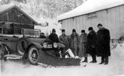 Keywords: bil plog snø brøyting vei vinter auto car snow winter snow plow snowplow brødrene øveraasen brødreneøveraasen fur pels cadillac blackandwhite monochrome black and white Beskrivelse: Forsøk med snøplog på bil. Stolte karer med pelsbekledning. År: 12. januar 1926 Fotograf: Ukjent Fotografier fra Arbeidsdepartementet, Veikontoret, eske Fj 177, mappe 4. Mappen har tittel: A/S Brødrene Øveraasens Bilploger. Arkivreferanse: S-1194_Fj177_4_29 Description: "Experimenting with snow plow on car, Gausdal January 12, 1926." Photographer: Unknown Photograps from the Ministry of Public Works, Public Roads Office. In 1923, Hans and Even Øveraasen of Norway constructed an early snowplow for use on cars. This proved to be the start of a tradition in snow-clearing equipment for roads, railways and airports, as well as the foundation of the company Øveraasen Snow Removal Systems. Beskrivelse: Forsøk med snøplog på bil. Stolte karer med pelsbekledning. År: 12. januar 1926 Fotograf: Ukjent Fotografier fra Arbeidsdepartementet, Veikontoret, eske Fj 177, mappe 4. Mappen har tittel: A/S Brødrene Øveraasens Bilploger. Arkivreferanse: S-1194_Fj177_4_29 Description: "Experimenting with snow plow on car, Gausdal January 12, 1926." Photographer: Unknown Photograps from the Ministry of Public Works, Public Roads Office. In 1923, Hans and Even Øveraasen of Norway constructed an early snowplow for use on cars. This proved to be the start of a tradition in snow-clearing equipment for roads, railways and airports, as well as the foundation of the company Øveraasen Snow Removal Systems. |