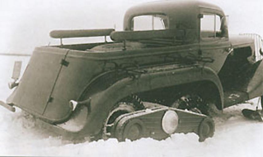 | Keywords: GAZ-VM pickup3-4 02.jpg en Soviet experimental half-track car GAZ-VM with pickup body during the state tests 3/4 view ГАЗ-В с кузовом «пикап» во в емя госиспытаний вид 3/4 сзади http //denisovets narod ru/gaz/gazpages/gazvm html Unknown Soviet state employee 1938 PD-Russia-2008 GAZ-VM |
