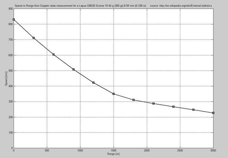 Keywords: GB528 VR.jpg en Graphics for Speed vs Range from Doppler radar measurement for a Lapua GB528 Scenar 19 44 g 300 gr 8 59 mm 0 338 in data source http //en wikipedia org/wiki/External_ballistics own Krfx 2010-12-21 Ballistics