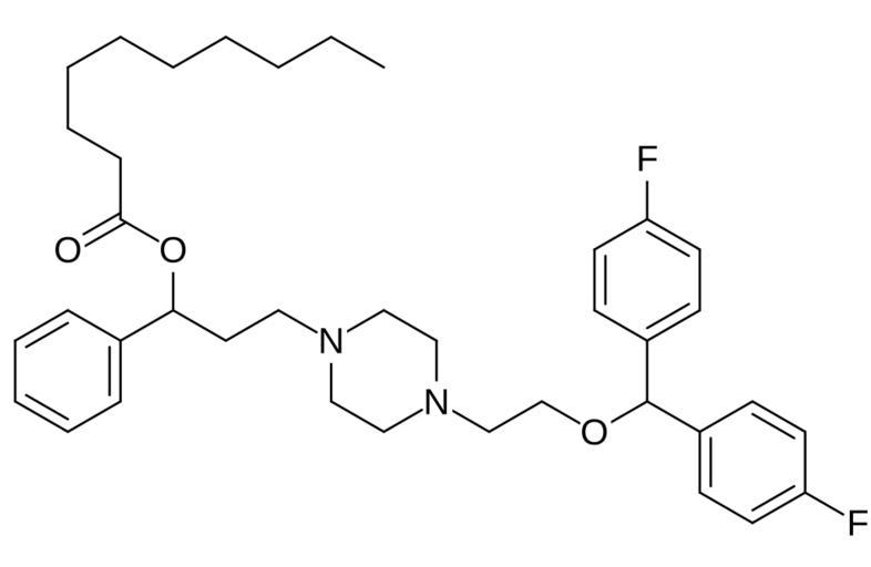 Keywords: GBR compound 281 decanoate 5.svg Chemical structure of GBR compound Own 01 47 17 July 2015 UTC Ed Edgar181 GBR compounds
