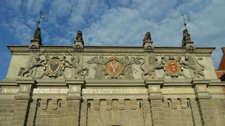 Keywords: Gdańsk Brama Wyżynna 2012 – fasada zachodnia.jpg pl Gdańsk Brama Wyżynna po renowacji fasada zachodnia own Artur Andrzej 2012-06-13 Cc-zero High Gate in Gdańsk Reliefs in Główne Miasto Reliefs of coats of arms of Gdańsk 2012 in Gdańsk