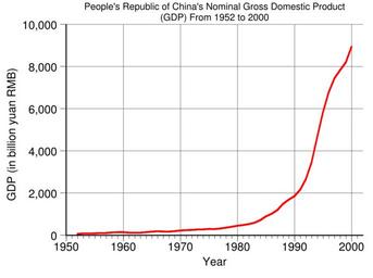 Keywords: GDP of China in RMB from 1952 to 2000.svg translate yes en GDP of China in billion yuan RMB from 1952 to 2000 showing the dramatic increase that began in the late 1970s Data from http //www chinability com/GDP htm GDP growth in China 1952-2011 2014-12-15 own Delphi234 other versions File GDP of China in RMB svg Generated with Wikimedia SVG Chart 1 s cc-zero Uploaded with UploadWizard Economy of the People's Republic of China |
