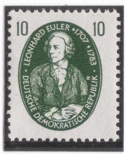 | Keywords: GDR-stamp Persönlichkeiten 10 1957 Mi. 575.JPG Berühmte Naturwissenschaftler Series Famous natural scientists scanned by heied 1957 stamp 2010-03 scan author info painter Jakob Emanuel Handmann m author info stamp designer Hanns Zehtmeyer m scanned by heied <gallery>File Leonhard Euler jpeg original painting</gallery> Philately Porträt von Leonhard Euler Ausgabepreis 10 Pf 1957-06-07 Hanns Zehtmeyer DDR 575 stamp design PD-ineligible painting 1781 Leonhard Euler 1957 stamps of the German Democratic Republic 575 Mathematicians on stamps German stamps review keep Jakob Emanuel Handmann |