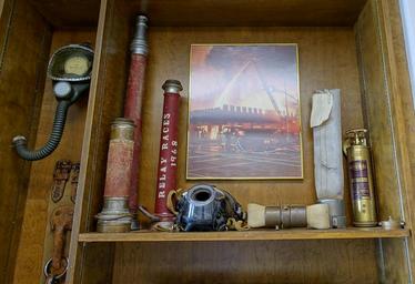 Keywords: Gear and fire photo - Austin Fire Museum - Austin, Texas - DSC09339.jpg en Exhibit in the Austin Fire Museum - 401 East 5th Street Austin Texas USA 2015-11-19 15 22 29 own Daderot other versions cc-zero Collections of the Austin Fire Museum |