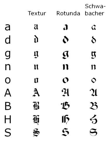 | Keywords: Gebrochene Schriften.svg  en Overview on several blackletter typefaces it Panoramica su diverse lettere in caratteri gotici SVG conversion of http //it wikipedia org/wiki/File Gebrochene_Schriften png Conversion made by Kat888 using Inkscape 0 46 Original author BK http //commons wikimedia org/wiki/User BK 2009-08-28 cc-zero Alphabets Blackletter |