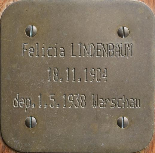 Keywords: Gedenkstein für Felicia Lindenbaum 2.JPG de Gedenkstein für Felicia Lindenbaum 2015-06-23 21 39 42 Christian Michelides Christian Michelides other versions cc-zero Gedenksteine in Wien-Mariahilf Uploaded with UploadWizard