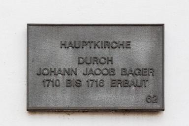 | Keywords: Gedenktafel Hauptkirche.jpg  de Die Gedenktafel an der Hauptkirche in Wiesbaden-Biebrich en The plaque on the Hauptkirche main church in Wiesbaden-Biebrich 2014-04-20 14 13 25 own Ansgar Koreng other fields 1 inscription inscription <big>HAUPTKIRCHE<br />DURCH<br />JOHANN JACOB BAGER<br />1710 BIS 1716 ERBAUT<br />62 de QualityImage self cc-zero Uploaded with UploadWizard Hauptkirche Wiesbaden Taken with Canon EOS 500D Photos by User Code Pictures of Wiesbaden by User Code Quality images of Hesse Quality images by User Code Quality images of plaques Quality images of monuments and memorials in Germany |