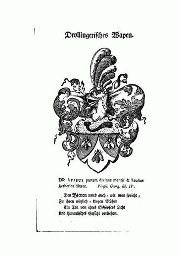 Keywords: Gedichte (Drollinger 1745) 021.gif 020 022 Bees in heraldry Elephants in heraldry Coats of arms of families of Switzerland Drollinger Karl Friedrich Drollinger