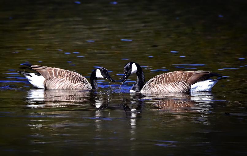 Keywords: geese nature birds eat feathers lake couple love romantic