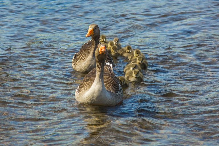 Keywords: geese nature lake family