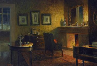 Keywords: Gehrmann Berliner Salon.jpg Berliner Salon mit Kaminfeuer oil on canvas 62 5 x 89 cm http //www zeller de/ by 1923 Creator Paul Gehrmann 1861 “ca 1923 PD-old-70 1920s domestic interiors in painting Paul Gehrmann Rooms in art Fireplaces in art Pianos in art Paintings of Berlin Armchairs in art Mirrors in art Images from Auktionshaus Zeller 1920s interiors in art Paintings in art |