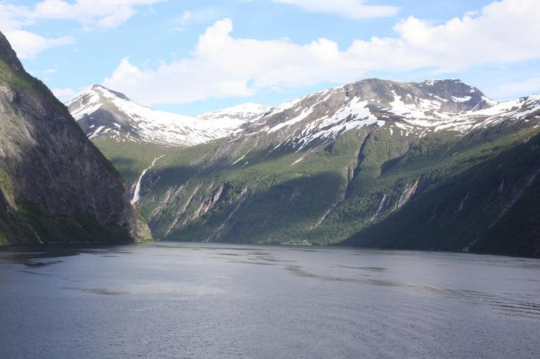 Keywords: geirangerfjord snowy mountains water norway fjord nature landscape scandinavia sky clouds rest
