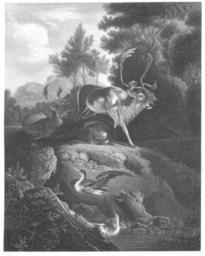 Keywords: Gemäldegalerie Alte Meister (Dresden) Galeriewerk Payne 102.jpg Artwork Jas Gray nach Creator Carl Borromäus Andreas Ruthart Hirsche und Reiher ~ 1845 steel engraving vermisst Gal -Nr 2011 missing gallery-nr 2011 Institution Gemäldegalerie Alte Meister Dresden Beschreibung aus Karl Woermanns Galeriekatalog 1887 Hirsche und Reiher Oben in der Mitte auf der Anhöhe ein stehender und zwei liegende Hirsche mit Schaufelgeweihen zwei von ihnen sind wohl Elentiere Vorn unten ein Wasser in dem ein Reiher steht während ein zweiter aus ihm emporsteigt Links oben Waldrand; im Hintergrunde hellblaue Gebirge Bez Rechts in der Mitte C RVTHART <small>Leinwand; h 0 68 m; br 0 55½ m</small> Abbildung seitenverkehrt reversed image Der Kunstverein; Neue Serie Stahlstich-Sammlung der vorzüglichsten Gemälde der Dresdener Gallerie Nebst Text von Adolph Görling; Verlag der Englischen Kunst-Anstalt von A H Payne Leipzig und Dresden self scanned from book PD-old-100 Other versions Gemäldegalerie Alte Meister Dresden Galeriewerk Payne Paintings formerly in the Gemäldegalerie Alte Meister Dresden Carl Borromäus Andreas Ruthart |