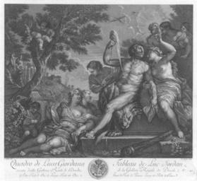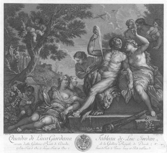 Keywords: Gemäldegalerie Alte Meister (Dresden) Galeriewerk Heineken 041.jpg Artwork Claude-Augustin Duflos nach Creator Luca Giordano Herkules und Omphale ~ 1750 Kupferstich copper engraving ehemals Gal -Nr 474 formerly gallery-nr 474 http //www mutualart com/Artwork/Hercules-and-Omphale/36473AC08D8E352B Institution Gemäldegalerie Alte Meister Dresden Beschreibung aus Karl Woermanns Galeriekatalog 1887 Hercules und Omphale Links sitzt der Halbgott neben der schönen Königstochter in deren Banden er schmachtet Sie erhebt eine Rose in ihrer Rechten er hält ihren Spinnrocken in der Linken Seine Keule liegt am Boden Drei Dienerinnen sind um das Paar beschäftigt Zwei andere harren rechts unter dem Baume am Wasserfall Ganz rechts in den Blumen prüft ein kleiner Liebesgott seinen Bogen Zwei andere spielen im Baume Bez unten links an der Stufe Luca Gordan F 1610 <small>Leinwand; h 2 26½ m; br 2 82 m</small> Abbildung seitenverkehrt de chaque tableau en francois et en italien Dresden 1753 Quelle http //digital slub-dresden de/id281375496 SLUB Dresden PD-old-100 Other versions Claude-Augustin Duflos Prints after Luca Giordano Paintings of Heracles and Omphale Gemäldegalerie Alte Meister Dresden Galeriewerk Heineken Paintings formerly in the Gemäldegalerie Alte Meister Dresden |