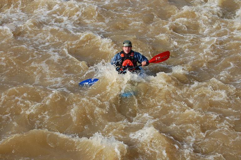 Keywords: Gemünden-Wehr04.jpg en Kajaking on the Kellenbach River in Gemünden Hunsrück landscape Germany own Prankster 2009-03-07 Gemünden Hunsrück Kellenbach River Whitewater kayaking