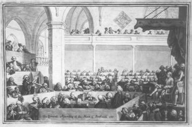 Keywords: General Assembly at the Tron Kirk, Edinburgh.jpg en The General Assemby of the Kirk of Scotland 1787 by David Allan The chair of honour is occupied by the Earl of Dalhousie and the speaker at the bar is the advocate James Boswell 1783 Scanned from F Maclean A Concise History Of Scotland London 1970 Creator David Allan PD-old-100 Church of Scotland Tron Kirk |