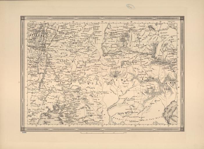 | Keywords: General Map of Central Asia- II WDL11775.png Artwork ru Авст о-Венге ская мона хия Militärgeographisches Institut fr Monarchie austro-hongroise Militärgeographisches Institut en Austro-Hungarian Monarchy Militärgeographisches Institut zh 奥匈 国 军事 理研究 pt Monarquia austro-húngara Militärgeographisches Institut ar المملكة النمساوية-المجرية المعهد الجغرافي العسكري es Monarquía austrohúngara Militärgeographisches Institut ru Общая ка та Цент альной Азии II fr Carte générale de l'Asie centrale II en General Map of Central Asia II zh 中亚 图:二 pt Mapa geral da Ásia Central II ar خريطة عامة لآسيا الوسطى الثانية ru <em> General-Karte von Central-Asien </em> Общая ка та Цент альной Азии п едставляет собой большую под обную ка ту выпущенную в 1874 г Военным геог афическим институтом в Вене Ка та занимает 12 отдельных листов п онуме ованных от I до XII; на 13-м листе п едоставлена общая инфо мация и уководство с нуме ацией для соединения частей Ка та охватывает обши ный егион на севе о-западе он г аничит с те ито ией России к севе у от Каспийского мо я; на юго-западе с те ито ией сов еменной Саудовской А авии и Омана на севе о-востоке с Западной онголией а на юго-востоке с п овинцией Гуджа ат Индия азвание ключ к символам и пояснения к сок ащениям п иводятся на Листе X в левом нижнем углу юго-запад асштаб указан в семи азличных единицах изме ения английских итальянских усских ту ецких пе сидских китайских и мет ических в нижней части Листа XII В число объектов на ка те входят большие и малые го ода; г аницы госуда ств и п овинций; башни к епости и уины; существующие и п оекти уемые железные до оги; телег афные линии и до оги Из названия следует что ка та была пе есмот ена с учетом лучших и новейших оссийских и английских источников Российская и Б итанская импе ии сопе ничали за установление влияния в Цент альной Азии вели так называемую Большую иг у Они очень хо ошо знали егион благода я данным полученным в ходе научных и военных экспедиций а также в езультате комме ческих контактов <br>А авийский залив; А авийский полуост ов; Пе сидский залив fr La <em>General-Karte von Central-Asien</em> Carte générale de l'Asie centrale est une grande carte détaillée réalisée en 1874 par l'Institut géographique militaire de Vienne Elle est composée de 12 planches distinctes numérotées de I à XII et d'une treizième planche contenant une vue générale et un guide numéroté permettant d'assembler la carte La carte couvre une vaste étendue délimitée au nord-ouest par la région de la Russie au nord de la mer Caspienne au sud-ouest par les actuels Arabie saoudite et Sultanat d'Oman au nord-est par la Mongolie occidentale et au sud-est par le Gujarat en Inde La plaque X située dans l'angle inférieur gauche sud-ouest contient le titre la légende des symboles et l'explication des abréviations Au bas de la plaque XII sept échelles sont fournies avec différentes unités de distance anglaise italienne russe turque perse chinoise et métrique La carte indique les villes et les villages les frontières nationales et provinciales les tours les forteresses et les vestiges les chemins de fer existants et en projet les lignes télégraphiques et les routes Selon le titre elle fut « révisée avec les meilleures et les plus récentes sources russes et anglaises » La Russie et l'Empire britannique se disputèrent le contrôle de l'Asie centrale dans une lutte d'influence appelée par la suite « le grand jeu » Ces deux puissances possédaient une expertise particulière de la région qu'elles devaient à leurs expéditions scientifiques et militaires ainsi qu'à leurs relations commerciales <br>Golfe Arabique; Péninsule arabique; Golfe Persique en <em>General-Karte von Central-Asien</em> General map of Central Asia is a large detailed map produced in 1874 by the Military Geographic Institute of Vienna The map is on 12 separate plates numbered I XII; a 13th plate gives an overview and a numbered guide to how the parts fit together The map covers a huge expanse bounded to the northwest by the region of Russia north of the Caspian Sea; to the southwest by present-day Saudi Arabia and Oman; to the northeast by western Mongolia; and to the southeast by Gujarat India The title key to symbols and explanation of abbreviations are on Plate X in the lower left-hand southwestern corner Seven scales in different distance units English Italian Russian Turkish Persian Chinese and metric are provided at the bottom of Plate XII The features shown include cities and towns; national and provincial borders; towers fortresses and ruins; existing and projected railroads; telegraph lines; and roads According to the title the map is revised with the best and newest Russian and