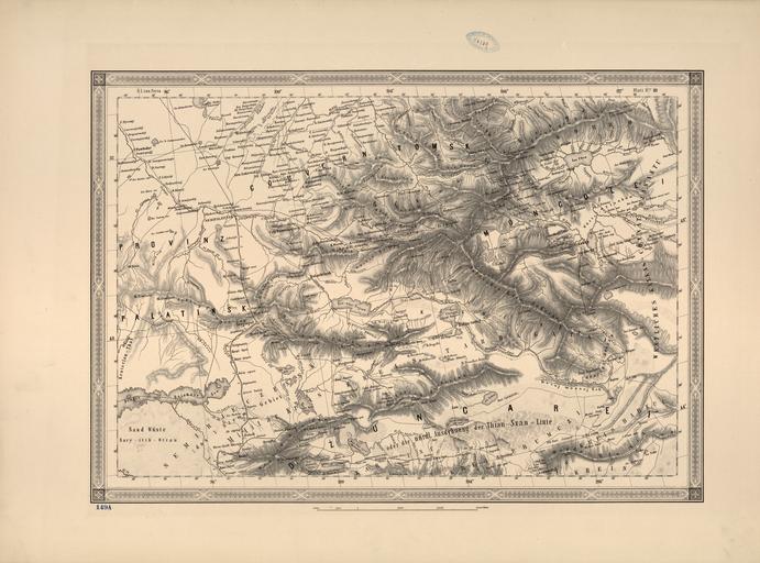 | Keywords: General Map of Central Asia- III WDL11776.png Artwork ru Авст о-Венге ская мона хия Militärgeographisches Institut fr Monarchie austro-hongroise Militärgeographisches Institut en Austro-Hungarian Monarchy Militärgeographisches Institut zh 奥匈 国 军事 理研究 pt Monarquia austro-húngara Militärgeographisches Institut ar المملكة النمساوية-المجرية المعهد الجغرافي العسكري es Monarquía austrohúngara Militärgeographisches Institut ru Общая ка та Цент альной Азии III fr Carte générale de l'Asie centrale III en General Map of Central Asia III zh 中亚 图:三 pt Mapa geral da Ásia Central III ar خريطة عامة لآسيا الوسطى الثالثة ru <em> General-Karte von Central-Asien </em> Общая ка та Цент альной Азии п едставляет собой большую под обную ка ту выпущенную в 1874 г Военным геог афическим институтом в Вене Ка та занимает 12 отдельных листов п онуме ованных от I до XII; на 13-м листе п едоставлена общая инфо мация и уководство с нуме ацией для соединения частей Ка та охватывает обши ный егион на севе о-западе он г аничит с те ито ией России к севе у от Каспийского мо я; на юго-западе с те ито ией сов еменной Саудовской А авии и Омана на севе о-востоке с Западной онголией а на юго-востоке с п овинцией Гуджа ат Индия азвание ключ к символам и пояснения к сок ащениям п иводятся на Листе X в левом нижнем углу юго-запад асштаб указан в семи азличных единицах изме ения английских итальянских усских ту ецких пе сидских китайских и мет ических в нижней части Листа XII В число объектов на ка те входят большие и малые го ода; г аницы госуда ств и п овинций; башни к епости и уины; существующие и п оекти уемые железные до оги; телег афные линии и до оги Из названия следует что ка та была пе есмот ена с учетом лучших и новейших оссийских и английских источников Российская и Б итанская импе ии сопе ничали за установление влияния в Цент альной Азии вели так называемую Большую иг у Они очень хо ошо знали егион благода я данным полученным в ходе научных и военных экспедиций а также в езультате комме ческих контактов fr La <em>General-Karte von Central-Asien</em> Carte générale de l'Asie centrale est une grande carte détaillée réalisée en 1874 par l'Institut géographique militaire de Vienne Elle est composée de 12 planches distinctes numérotées de I à XII et d'une treizième planche contenant une vue générale et un guide numéroté permettant d'assembler la carte La carte couvre une vaste étendue délimitée au nord-ouest par la région de la Russie au nord de la mer Caspienne au sud-ouest par les actuels Arabie saoudite et Sultanat d'Oman au nord-est par la Mongolie occidentale et au sud-est par le Gujarat en Inde La plaque X située dans l'angle inférieur gauche sud-ouest contient le titre la légende des symboles et l'explication des abréviations Au bas de la plaque XII sept échelles sont fournies avec différentes unités de distance anglaise italienne russe turque perse chinoise et métrique La carte indique les villes et les villages les frontières nationales et provinciales les tours les forteresses et les vestiges les chemins de fer existants et en projet les lignes télégraphiques et les routes Selon le titre elle fut « révisée avec les meilleures et les plus récentes sources russes et anglaises » La Russie et l'Empire britannique se disputèrent le contrôle de l'Asie centrale dans une lutte d'influence appelée par la suite « le grand jeu » Ces deux puissances possédaient une expertise particulière de la région qu'elles devaient à leurs expéditions scientifiques et militaires ainsi qu'à leurs relations commerciales en <em>General-Karte von Central-Asien</em> General map of Central Asia is a large detailed map produced in 1874 by the Military Geographic Institute of Vienna The map is on 12 separate plates numbered I XII; a 13th plate gives an overview and a numbered guide to how the parts fit together The map covers a huge expanse bounded to the northwest by the region of Russia north of the Caspian Sea; to the southwest by present-day Saudi Arabia and Oman; to the northeast by western Mongolia; and to the southeast by Gujarat India The title key to symbols and explanation of abbreviations are on Plate X in the lower left-hand southwestern corner Seven scales in different distance units English Italian Russian Turkish Persian Chinese and metric are provided at the bottom of Plate XII The features shown include cities and towns; national and provincial borders; towers fortresses and ruins; existing and projected railroads; telegraph lines; and roads According to the title the map is revised with the best and newest Russian and English sources Russia and the British Empire were rivals for influence in Central Asia in what came to be called the Great Game and they had special expertis