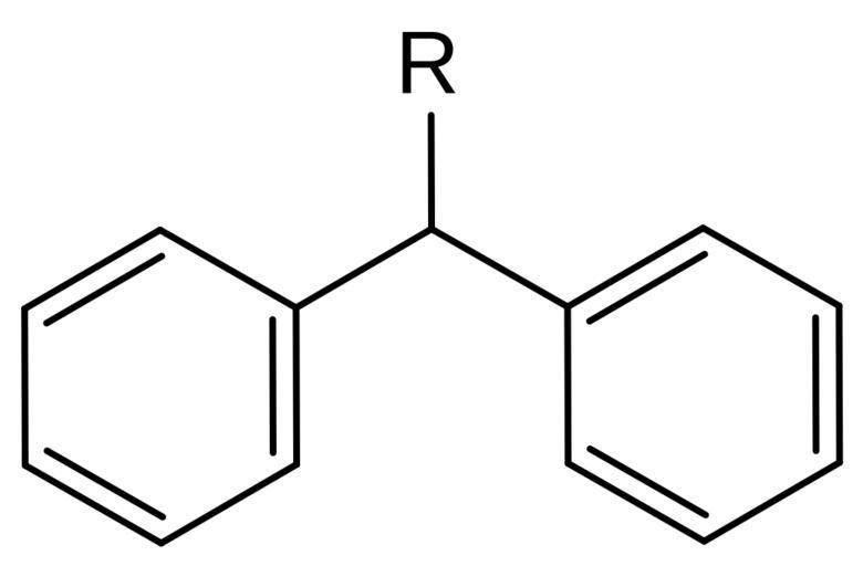 Keywords: General struct benzhydryl group.svg en General structure of benzhydryl group fr Structure générale d'un groupe benzhydryle de Generalstruktur der Benzhydrylgruppe 2012-03-02 own Snipre cc-zero Uploaded with UploadWizard Functional groups