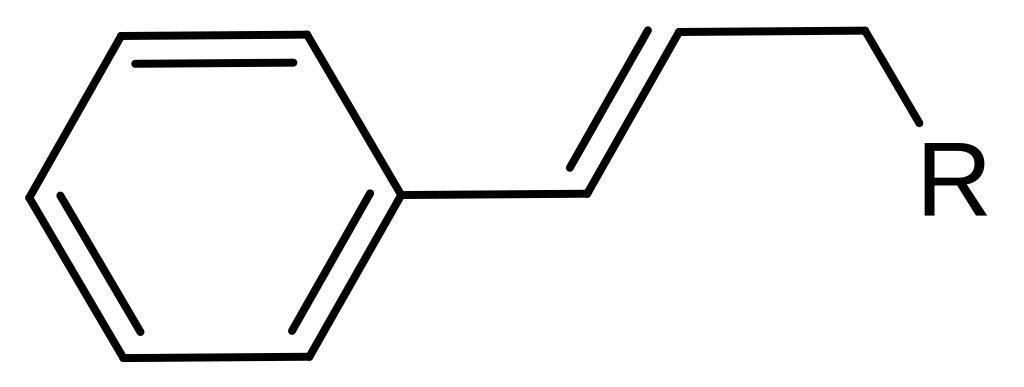 Keywords: General struct cinnamyl group.svg en General structure of cinnamyl group fr Structure générale d'un groupe cinnamyle de Generalstruktur der Cinnamylgruppe 2012-03-06 own Snipre cc-zero Uploaded with UploadWizard Functional groups