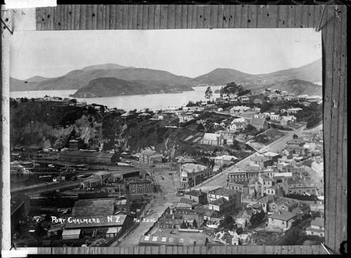 Keywords: blackandwhite monochrome photo border outdoor black and white View of Port Chalmers taken from a vantage point overlooking the township and looking south towards the harbour, Quarantine Island and the Peninsula. The harbour and buildings on the waterfront are on the left. Photograph taken by William A Price in the early 1900s. Inscriptions: Inscribed - Photographer's title on negative -bottom left: Port Chalmers. NZ. No 3206. Quantity: 1 b&w original negative(s). Physical Description: Dry plate glass negative 4.75 x 6.5 inches General view of Port Chalmers. Price, William Archer, 1866-1948 :Collection of post card negatives. Ref: 1/2-001248-G. Alexander Turnbull Library, Wellington, New Zealand. natlib.govt.nz/records/22794654 View of Port Chalmers taken from a vantage point overlooking the township and looking south towards the harbour, Quarantine Island and the Peninsula. The harbour and buildings on the waterfront are on the left. Photograph taken by William A Price in the early 1900s. Inscriptions: Inscribed - Photographer's title on negative -bottom left: Port Chalmers. NZ. No 3206. Quantity: 1 b&w original negative(s). Physical Description: Dry plate glass negative 4.75 x 6.5 inches General view of Port Chalmers. Price, William Archer, 1866-1948 :Collection of post card negatives. Ref: 1/2-001248-G. Alexander Turnbull Library, Wellington, New Zealand. natlib.govt.nz/records/22794654 |