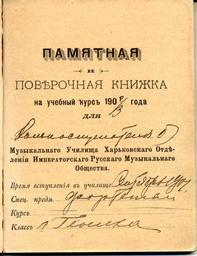 Keywords: Genika pedagog.jpg ru Пове очная книжка учащегося Ха ьковского музыкального училища ИР О по классу известного пианиста педагога музыкального к итика и авто а музыкально-исто ических т удов Ростислава Владими овича Геники а чевского ихаила иколаевича впоследствии ставшего п офессо ом математических наук Ха ьковского госуниве ситета им В Ка азина и п одолжавшего до последних дней жизни активную музыкальную деятельность в качестве пианиста и композито а в Ха ьковском Доме учёных own Импе ато ское Русское узыкальное Общество 1902/3 учебный год из моего личного а хива по исто ии музыки Ха ькова PD-old Documents of Kharkiv Universities and colleges in Kharkiv Unidentified year in Kharkiv Music in Kharkiv Oblast
