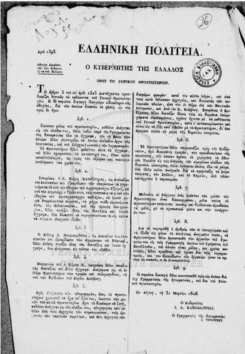 | Keywords: Genikon Frontistirion Kapodistria 1828.jpg en Order of the Governor of Greece Capo d'Istria for the duties of Genikon Frontistirion el Γενικόν Φροντιστήριον Διαταγή του Κυβερνήτη της Ελλάδος Ιωάννη Κα οδίστρια για τα καθήκοντα του Γενικού Φροντιστηρίου http //arxeiomnimon gak gr/browse/resource html tab tab02 id 482745 start 40 Φάκελος 290 - ΣΥΛΛΟΓΗ ΒΛΑΧΟΓΙΑ Η ΙΔΙΩΤΙΚΕΣ ΣΥΛΛΟΓΕΣ ΚΑΤΑΛΟΓΟΣ Α' / ΑΡΧΕΙΟ ΑΡΧΙΣΤΡΑΤΗΓΟΥ ΤΣΟΥΡΤΣ ΥΨΗΛΑ ΤΟΥ 1828 1829 Greek Government 1828 1828-03-31 From the General Archives of the Greek State Α ό τα Γενικά Αρχεία του Κράτους PD-old-100 Institution General State Archives Greece Government of Greece Ioannis Kapodistrias General State Archives Greece |
