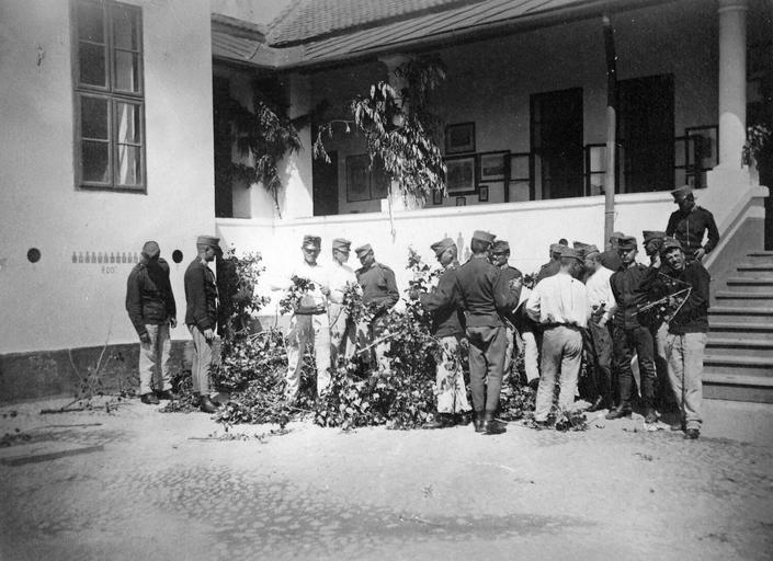 Keywords: Genre painting, First World War, soldier, men, uniform, yard, porch, stairs Fortepan 14301.jpg Check categories 2016 June 14 Tags genre painting First World War soldier men uniform yard porch stairs http //www fortepan hu/_photo/download/fortepan_20600 jpg 1917 Fortepan 14301 http //www fortepan hu/_photo/download/fortepan_20600 jpg http //www fortepan hu/ lang en img 14301 Unknown The release at fortepan hu is CC-BY-SA-3 0 As the photographer is unknown or pseudonymous and the photograph is Age 1917 01 01 years old it is considered public domain both in the country of publication Hungary and the USA where Wikimedia Commons is hosted See Fortepan HU for more information on related uploads PD-anon-70-EU PD-1923 DEFAULTSORT Fortepan 014301 1917 photographs Images uploaded by Fæ |