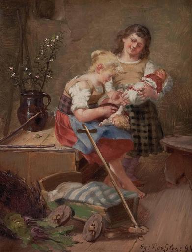 | Keywords: Georg Rössler Zwei Mädchen mit Puppen 1894.jpg Zwei Mädchen mit Puppen unten rechts signiert und datiert Gg Roessler 18 94 Öl auf Holz ca 28 x 19 cm http //www dorotheum com/ Dorotheum 1894 Georg Rössler 1861-1925 PD-old Images from Dorotheum Georg Rössler 1894 paintings Portraits of girls with dolls Playing children in art |