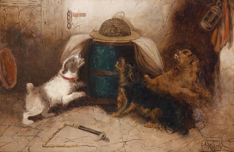 | View Original: | George_Armfield_Three_Dogs_Barking_at_a_Mouse.jpg (3673x2393) | |||