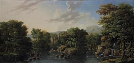 Keywords: George Barret - A wooded river landscape with fishermen in a boat, a ruined building beyond etc...jpg George Barret Sr George Barret Sr other date ca 1728/32 -1784 oil canvas cm 60 3 125 6 object history Provenance Commissioned by Joseph Leeson 1st Earl of Milltown 1701-1783 for the Saloon at Russborough Co Wicklow Ireland and by descent until acquired by Capt Denis Daly along with the remaining contents of Russborough in 1931; Hamilton Hamilton Russborough 21 October 1952 lots 147-8 <br/> Mr and Mrs Donald Davies Charleville Enniskerry Co Wicklow; Christie's on the presmises 23 January 1978 lot 142 where acquired by the present owner credit line accession number christies online 5391280 PD-Art-100 George Barret Sr 18th-century landscape paintings |