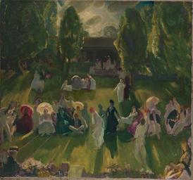 Keywords: George Bellows - Tennis at Newport (1919).jpg Artwork Creator George Wesley Bellows 1919 oil on canvas cm 101 6 109 9 Institution Metropolitan Museum of Art not on display object history credit line Bequest of Miss Adelaide Milton de Groot 1876-1967 1967 Geo Bellows/1919 ~ lower right signature and date http //www hvallison com/WorkDetail aspx w 193 George Bellows ™ Catalogue RaisonnĂ© accession number 67 187 121 489559 PD-old-100-1923 1925 DEFAULTSORT Bellows George Tennis at Newport 1919 Paintings by George Wesley Bellows Paintings by George Bellows in the Metropolitan Museum of Art 20th-century art in the Metropolitan Museum of Art Picnics in art Tennis in art |
