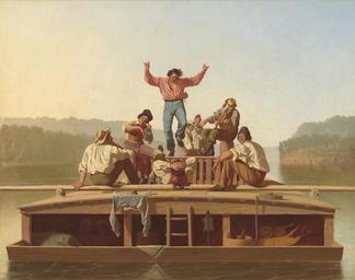 Keywords: George Caleb Bingham- "The Jolly Flatboatmen".jpg Artwork Q20187667 creator George Caleb Bingham 1846 oil canvas cm 96 8 123 2 institution National Gallery of Art http //arthistory about com/od/from_exhibitions/ig/american_stories_met_lacma/poel_mma_1109_09 htm arthistory about com object history credit line Patrons' Permanent Fund accession number 2015 18 1 http //www nga gov/content/ngaweb/Collection/art-object-page 75206 html http //www allartpainting com/the-jolly-flatboatmen-p-990 html allartpainting com http //0 tqn com/d/arthistory/1/0/Q/v/poel_mma_1109_09 jpg PD-old-100 George Caleb Bingham Missouri River in art Flatboats 1846 paintings |