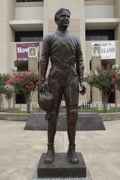 Keywords: George E. "Pat" Foley's statue, "The Twelfth Man," on the Texas A&M University campus in College Station, Texas LCCN2014633927.tif 1 photograph digital tiff file color Notes Title date and keywords based on information provided by the photographer ; A gift of the Class of 1980 this sculpture portrays E King Gill an A M student and football player from the 1920s In 1922 during a post-season game Gill was called from the stands to help the football team which was rapidly losing players due to injuries Although he never entered the game by the time it was over he was the only player standing along the sidelines Since that time Aggies as the fans and players are called have stood at football games to symbolize their support for the team It is felt that the crowd's energy has the effect of supplying an additional player to the 11 men competing on the field ; Forms part of Lyda Hill Texas Collection of Photographs in Carol M Highsmith's America Project in the Carol M Highsmith Archive ; Gift; The Lyda Hill Foundation; 2014; DLC/PP-2014 054 ; Credit line The Lyda Hill Texas Collection of Photographs in Carol M Highsmith's America Project Library of Congress Prints and Photographs Division 2014 Creator Carol M Highsmith Library of Congress Catalog http //lccn loc gov/2014633927 Image download https //cdn loc gov/master/pnp/highsm/29700/29727a tif Original url http //hdl loc gov/loc pnp/highsm 29727 No known restrictions on publication LOC-image highsm 29727 PD-Highsmith Images uploaded by Fæ Lyda Hill Texas Collection of Photographs in Carol M Highsmith's America Project in the Carol M Highsmith Archive The Lyda Hill Texas Collection of Photographs in Carol M Highsmith's America Project Library of Congress Prints and Photographs Division Photographs by Carol M Highsmith