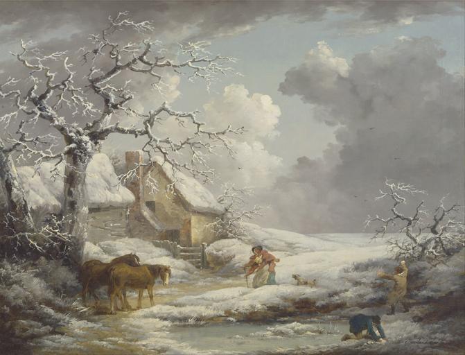 Keywords: George Morland - Winter Landscape - Google Art Project.jpg No inscription Inscription _Signed_and_Dated Signed and dated lower right G Morland 1790 Not on View Oil on canvas clouds dog animal sky animals horses animals snow winter cold men woman family games thatching frozen ice chimney architectural element gate cottage farmhouse pond trees rural bonnet hats redingote overcoat shawl outerwear shawls cane genre subject landscape special url_id kwGw_bmuBqSScw PD-old-100-1923 1804 George Morland Google Art Project works by George Morland Paintings of winter 1790 paintings |