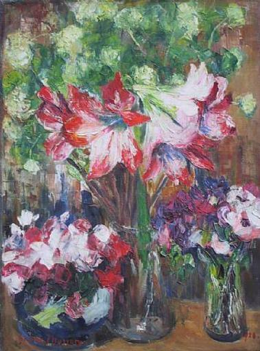 | Keywords: George Mosson Stillleben Amaryllis 1928.jpg Artwork creator George Mosson 1928 Oil Canvas 70 × 52 5 cm private collection accession number object history credit line http //www artnet com/artwork/156663/1092/george-mosson-flower-still-life-with-amaryllis html Creator George Mosson PD-old-auto 1933 Germany January 1 1996 1928 paintings George Mosson |