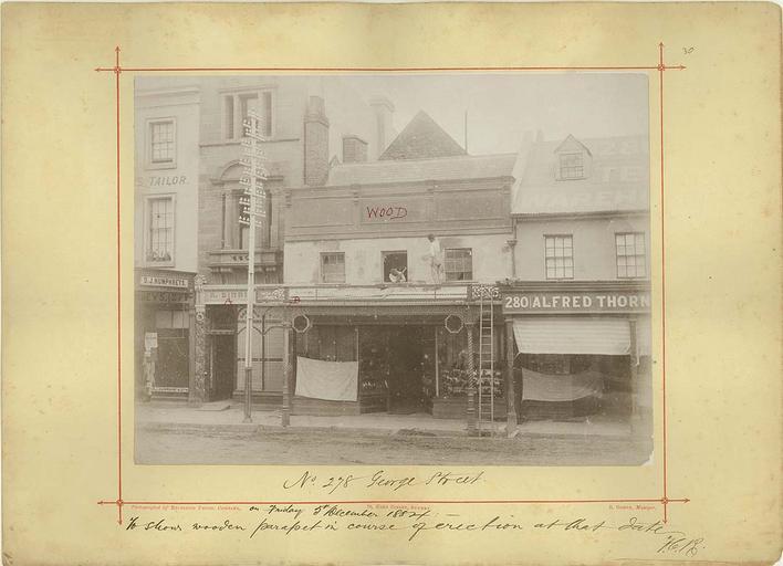 Keywords: archives state records nsw staterecordsnsw newsouthwales blackandwhite sydney george street georgestreet people text black and white No. 278 George Street - showing wooden parapet Dated: 5/12/1884 Digital ID: 745_a019_a019000005 Rights: www.records.nsw.gov.au/about-us/rights-and-permissions In 1879 The City of Sydney Improvement Act was constituted as a result of the findings of the Sydney City and Suburban Sewage and Health Board regarding the poor condition of buildings and sanitation within the City of Sydney due to a lack of proper legislation and codes of building practice. The City of Sydney Improvement Board was appointed to execute the Act. These photographs, taken by private photographers for the Board, show buildings in need of repair or undergoing alterations, as well as views of streets showing the condition of awnings, signboards and walls of shops, hotels and private residences. We'd love to hear from you if you use our photos. Many other photos in our collection are available to view and browse on our website using Photo Investigator. No. 278 George Street - showing wooden parapet Dated: 5/12/1884 Digital ID: 745_a019_a019000005 Rights: www.records.nsw.gov.au/about-us/rights-and-permissions In 1879 The City of Sydney Improvement Act was constituted as a result of the findings of the Sydney City and Suburban Sewage and Health Board regarding the poor condition of buildings and sanitation within the City of Sydney due to a lack of proper legislation and codes of building practice. The City of Sydney Improvement Board was appointed to execute the Act. These photographs, taken by private photographers for the Board, show buildings in need of repair or undergoing alterations, as well as views of streets showing the condition of awnings, signboards and walls of shops, hotels and private residences. We'd love to hear from you if you use our photos. Many other photos in our collection are available to view and browse on our website using Photo Investigator. |