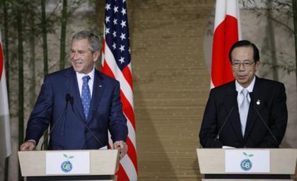 Keywords: George W Bush and Yasuo Fukuda 20080706 2.jpg en President George W Bush and Prime Minister Yasuo Fukuda listen to questions at the Windsor Hotel Toya Resort and Spa in Tōyako Town Abuta District Hokkaidō on July 6 2008 http //www whitehouse gov/news/releases/2008/07/images/20080706_d-0017-515h html President Bush Participates in Joint Press Availability with Prime Minister Fukuda of Japan White House photo by Eric Draper 2008-07-06 PD-USGov George W Bush in 2008 Yasuo Fukuda in 2008 George W Bush and Yasuo Fukuda 34th G8 summit Photographs by Eric Draper |