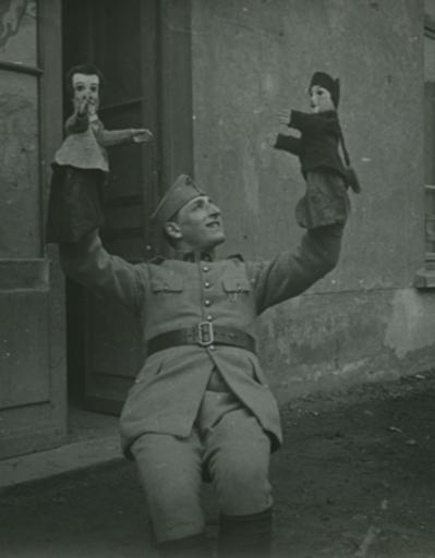 Keywords: Georges Bazin 1927.jpg Guignol and in his right hand Gnafron which are explained He brings to life the puppets Georges Bazin souriant en tenue de permission est appuyé de face à un rebord de fenêtre Les bras levés tel un comédien il a revêtu dans sa main gauche la marionnette de Guignol et dans sa main droite celle de Gnafron qui s ™expliquent Il anime la scène 1927 LangSwitch black and with photograph with plate photography photographie noire et blanche avec plaque stéréo place of discovery object history exhibition history credit line Montchat Guignol de Montchat The first performers are Stéphane Vessot for Guignol Lucien Montet for Gnafron Paul Turlin for Madelon Georges Bazin and Maurice Turlin are the other personages En 1924 est créé au patronage de Montchat le Guignol de Montchat Les premiers interprètes sont Stéphane Vessot pour Guignol Lucien Montet pour Gnafron Paul Turlin pour Madelon Georges Bazin et Maurice Turlin sont les autres personages accession number place of creation Montchat Lyon Isère Rhône-Alpes France http //www histoire-genealogie com/spip php article1484 Site Histoire-Généalogie PD-Art <gallery> File Georges Bazin 1927 jpg Geoges Bazin version coupée et éclaicie File Georges Bazin 1927 jpg Georges Bazin version coupée éclaircie et fond retouché </gallery> archiveurl Céléonet 2008-10-16 2015-06-05 fr Uploaded with UploadWizard Montchat Lyon Guignol Puppets