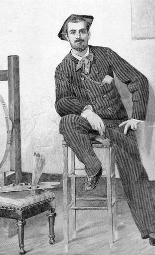 Keywords: Georges Clairin by Léon Henri Ruffé.jpg title French painter Georges Clairin 1843 “1919 816109 Léon Henri Ruffé 1864-1951 engraving cm object history credit line accession number 1892 PD-Art Georges Jules Victor Clairin Léon Ruffe 1892 engravings 19th-century men looking at viewer in art 19th-century engraved portraits of men at full length Striped clothing in art Striped clothing male |