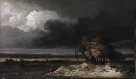 Keywords: Georges Michel - Gathering Storm - Walters 371991.jpg Michel became acquainted with Dutch 17th-century landscape painting when he was employed as a restorer by the Louvre Museum at the beginning of the 19th century He was an important precursor of the Barbizon artists He became a landscape painter and worked in the vicinity of Paris especially near Montmartre and on the plains of St Denis to the north Observing the landscape from a height-he was probably seated on a hilltop-Michel has painted a flat panoramic view with a low heavy sky threatening a storm This painting exhibits the broad lyrical brushstrokes and sharp contrasts in light and shadow that characterized his mature style of the 1830s between 1830 1839 Oil on canvas cm 42 2 72 6 accession number 37 1991 22085 The George A Lucas Collection Baltimore date and mode of acquisition unknown Maryland Institute College of Art Baltimore May 9 1910 by bequest Henry Walters as executor Walters Art Museum 1996 by purchase Museum purchase with exchange funds from the gifts of Mrs T Willing Balch Mrs Ludlow Baldwin Mrs Joseph Bryan III Gabriele Bruck Misses Elizabeth L and Louise M Clark Mrs Denison Frick Mr David R Harrison Mrs Frances W Haussner The Haussner Family Limited Partnership Mr Martin Horowitz Mrs Jane Lipman in memory of Leroy and Elizabeth Lipman the estate of Rita Lowenstein Mrs Thelma Pierce Sara D Redmond Harriet Rowland Louis E Shecter Mrs Henriette Stevens James and Jean Tebay and William C Whittridge and the bequests of Miss Laura F Delano Laura Delano Eastman Mrs Ruth Mangels Wineholt Eppler Mr Stephen Glazer Mr Philip B Perlman Mary Saunders Ward Mrs Frances Eaton Weld and H Morris Whitehurst 1996 2008 Before Monet Landscape Painting in France and Impressionist Masters Highlights from The Walters Collection The Walters Art Gallery Baltimore 1998 The Road to Impressionism Landscapes from Corot to Manet The Walters Art Museum Baltimore 2004-2005 The Road to Impressionism Barbizon Landscapes from the Walters Art Museum The Dixon Gallery and Gardens Memphis; The Frick Art Historical Center Pittsburgh 2008-2009 place of origin Ville de Paris France Walters Art Museum license 2D Georges Michel Media contributed by the Walters Art Museum needs category review French paintings in the Walters Art Museum 1830s paintings from France