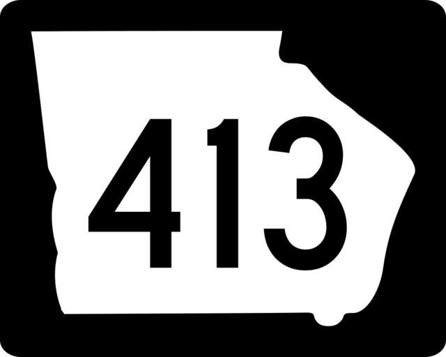 Keywords: Georgia 413.svg Georgia state route marker Signs use FHWA type D or type C font http //wwwb dot ga gov/operations/traffic-safety-design/Documents/PDF/3 20Non-Interstate 20Signing 20and 20Marking 20Design 20Guidelines pdf and approximated from http //shields aaroads com/thumbs php state GA photos 2010-06-03 Fredddie originally created by Pedriana Diagrams of road signs of Georgia U S state 413 |