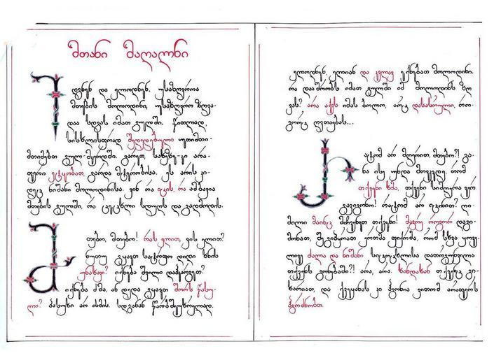 Keywords: Georgian calligraphy competition Ana Gogberashvili.jpg ka แแ แ แแ แแแแ แแจแแแแแก แ แแแฃแจแแแแ แ แแแแแแ แแคแแแก แแ แ แแฃแ แกแ 2011 manuscript ge Manuscript ge 2010 PD-Art Georgian calligraphy competition |
