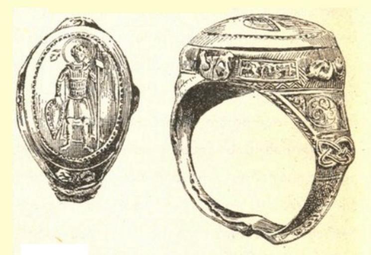 Keywords: Georgian royal signet ring.jpg en A 12th-century Georgian royal ring attributed either to King David IV or George III ka მეფე გი რგი III-ის გ 1184 ბეჭდის ფ ტ კ დაკ ვის აღწერით ბეჭედი ქრ სი ყ ფილა გა საკუთრებით დიდი ზ მის წმიდა გი რგის გამ სახულებითა და შემდეგი წარწერით წმიდა გი რგი მე გი რგი სას ებითა შე ითა ვსძლევ მტერთა ჩემთა Святой Гео гий я Гео гий надеждою на тебя побеждаю в ага იხ კ დაკ ვი ბაქრაძე გვ 41 ბეჭედი დავით აღმაშე ებლის ბეჭდის სახელით ი ახებ და გელათის ტაძარში 1904 წელს ტაძარი გაუძარცვავთ და ეს ქრ ს ბეჭედიც სამუდამ დ დაკარგულა ფ ტ დაცულია ერ ვ ულ არქივში დიმიტრი ერმაკ ვის ფ ტ კ ლექციაში http //www archives gov ge/ge/page/mefe-giorgi-is-bechedi-kviris-dokumenti 1902 http //dspace nplg gov ge/bitstream/1234/68254/1/Saqartvelo_Metormete_Saukuneshi pdf საქართველ მეთ რმეტე საუკუ ეში სურათებით ტფ 1902 n/a other versions 80px Custom license marker 2015 02 23 PD-Old-70 Uploaded with UploadWizard Medieval art of Georgia Signet rings George III of Georgia David IV of Georgia |