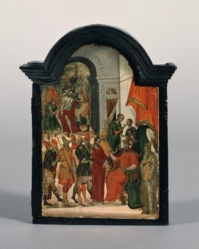 | Keywords: Georgios Klontzas - Scenes of Christ's Passion - Walters 37628 - Closed.jpg This folding icon was originally a triptych three-paneled icon ; the right wing is now lost The panels that remain depict on the left Christ on the Road to Calvary and on the right the Crucifixion This icon is an excellent example of the art produced on the Greek Island of Crete then under Venetian control where the Byzantine tradition of icon painting had survived the fall of the empire The strong color contrasts fluid highlights and contorted poses of the figures suggest that the icon was painted by George Klontzas one of the most innovative Cretan icon painters of the late 16th century between 1550 1600 Early Modern tempera wood cm 18 7 14 5 3 5 accession number 37 628 35213 Don Marcello Massarenti Collection Rome date and mode of acquisition unknown Henry Walters city Baltimore Walters Art Museum Henry Walters Acquired by Henry Walters with the Massarenti Collection 1902 Holy Image Holy Space Icons and Frescoes from Greece The Walters Art Gallery Baltimore; Center for the Fine Arts Miami; Kimbell Art Museum Fort Worth; Fine Arts Museums of San Francisco San Francisco; The Cleveland Museum of Art Cleveland; The Detroit Institute of Arts Detroit; Virginia Museum of Fine Arts Richmond 1988-1990 place of origin Crete Greece Walters Art Museum license 3D Medieval art in the Walters Art Museum Georgios Klontzas Paintings in the Walters Art Museum Media contributed by the Walters Art Museum needs artist update |
