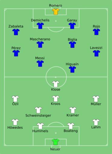 Keywords: GER-ARG 2014-07-13.svg 2014 FIFA World Cup Final match between Germany and Argentina 2014-07-13 23 06 19 own <br />Line-ups http //resources fifa com/mm/document/tournament/competition/02/40/47/25/eng_64_0713_ger-arg_tacticalstartlist_neutral pdf Davykamanzi cc-zero Uploaded with UploadWizard FIFA World Cup 2014 line-ups