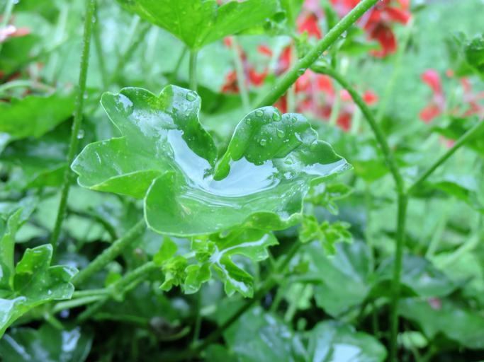 Keywords: geranium leaf drop of water geranium raindrop wet rainy leaves