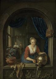 Keywords: Gerard Dou - Maid at the Window - Google Art Project.jpg Artwork creator Gerard Dou LangSwitch Maid at the window Dienstmaagd aan het venster ~ 1660 Oil on panel cm 38 28 Institution Museum Boijmans Van Beuningen 11 LangSwitch On the birdcage Op de vogelkooi Object history by 1799 Kurfürstliche Galerie 716 Munich by 1879 Alte Pinakothek Munich transfer Filialgalerie Bayreuth ProvenanceEvent 1938-12-31 purchase Willem van der Vorm 1873-1957 Rotterdam Arthur Goldschmiedt ProvenanceEvent 1956 conveyance Stichting Willem van der Vorm ProvenanceEvent 1972 loan LangSwitch das the au het Boijmans Rotterdam Stichting Willem van der Vorm Exhibition history Tentoonstelling van schilderijen beeldhouwwerken en teekeningen uit particuliere verzamelingen in Nederland 15 Drieënzestig schilderijen uit de verzameling Willem van der Vorm Rotterdam 23 Kunstschatten uit Nederlandse verzamelingen 61 140 kgHqQU7Cak6BXg VdV 21 Other versions Gerard Dou 007 jpg Version from collectie boijmans nl VdV 11 LangSwitch Maid at the window Dienstmaagd aan het venster ~ 1660 ~ 1657-1663 25021 Dienstmaagd aan het venster 1628-1675 PD-old-100-1923 1675 Paintings by Gerard Dou 1660 Maid At The Window Google Art Project works by Gerard Dou Dutch Golden Age paintings in the Museum Boijmans Van Beuningen Dou Gerard 1660 Dutch Golden Age paintings of people in windows in stone wall Museum Boijmans Van Beuningen - Room 11 Dou People at windows in art |